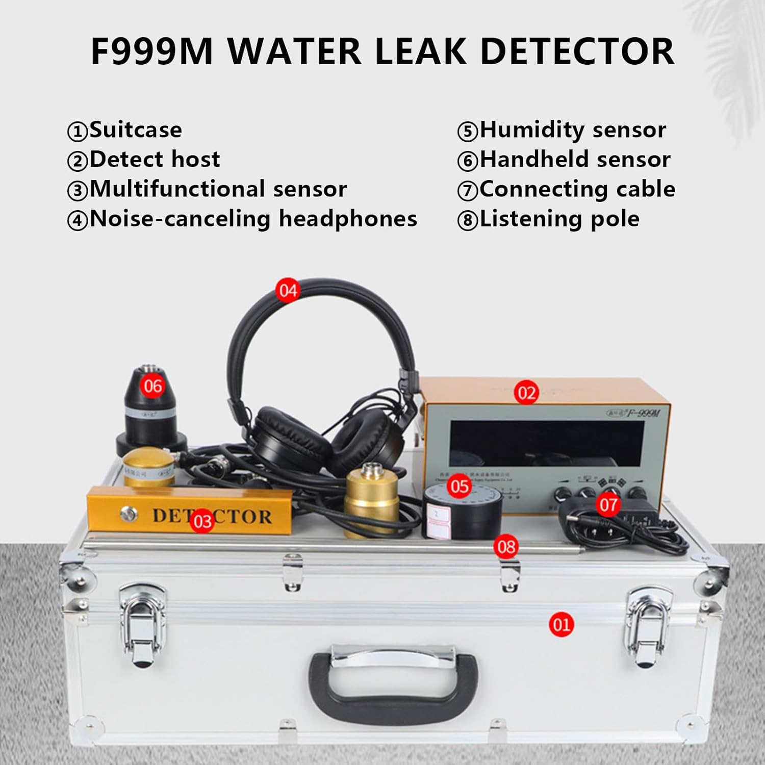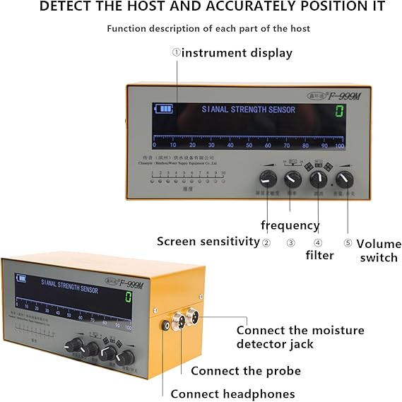 Máy dò rò rỉ nước F999M là một thiết bị siêu âm chuyên nghiệp được thiết kế để xác định vị trí rò rỉ trong các hệ thống đường ống nước. Dưới đây là các thông số kỹ thuật chính của thiết bị